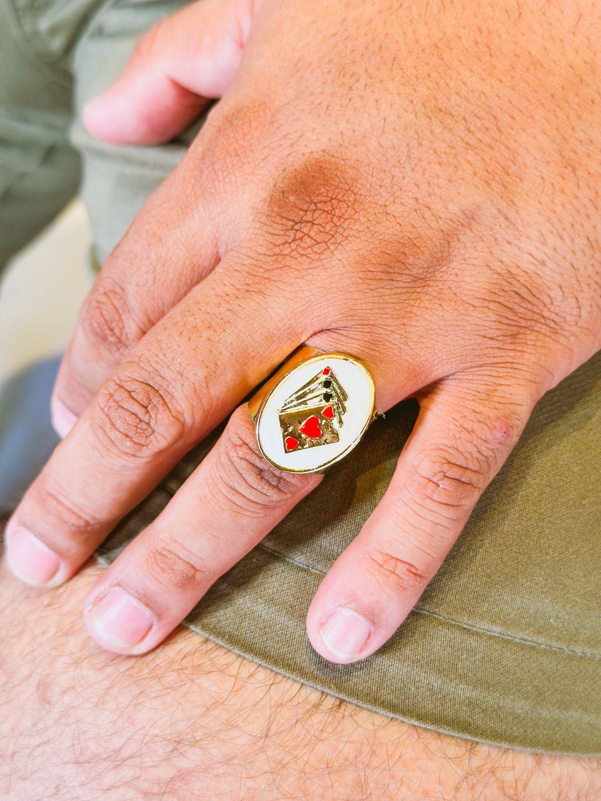 Anel feito de Zamac um material muito resistente e banhada a ouro, garantindo qualidade e durabilidade em sua peça. Além de impedir o contato dos metais com a pele, evitando possíveis alergias.
