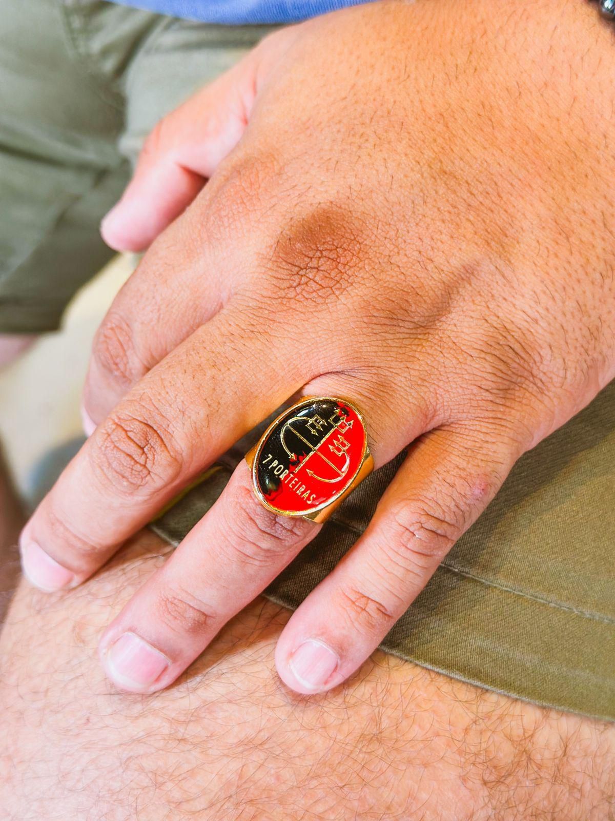Anel Exu 7 porteiras - oval dourado
