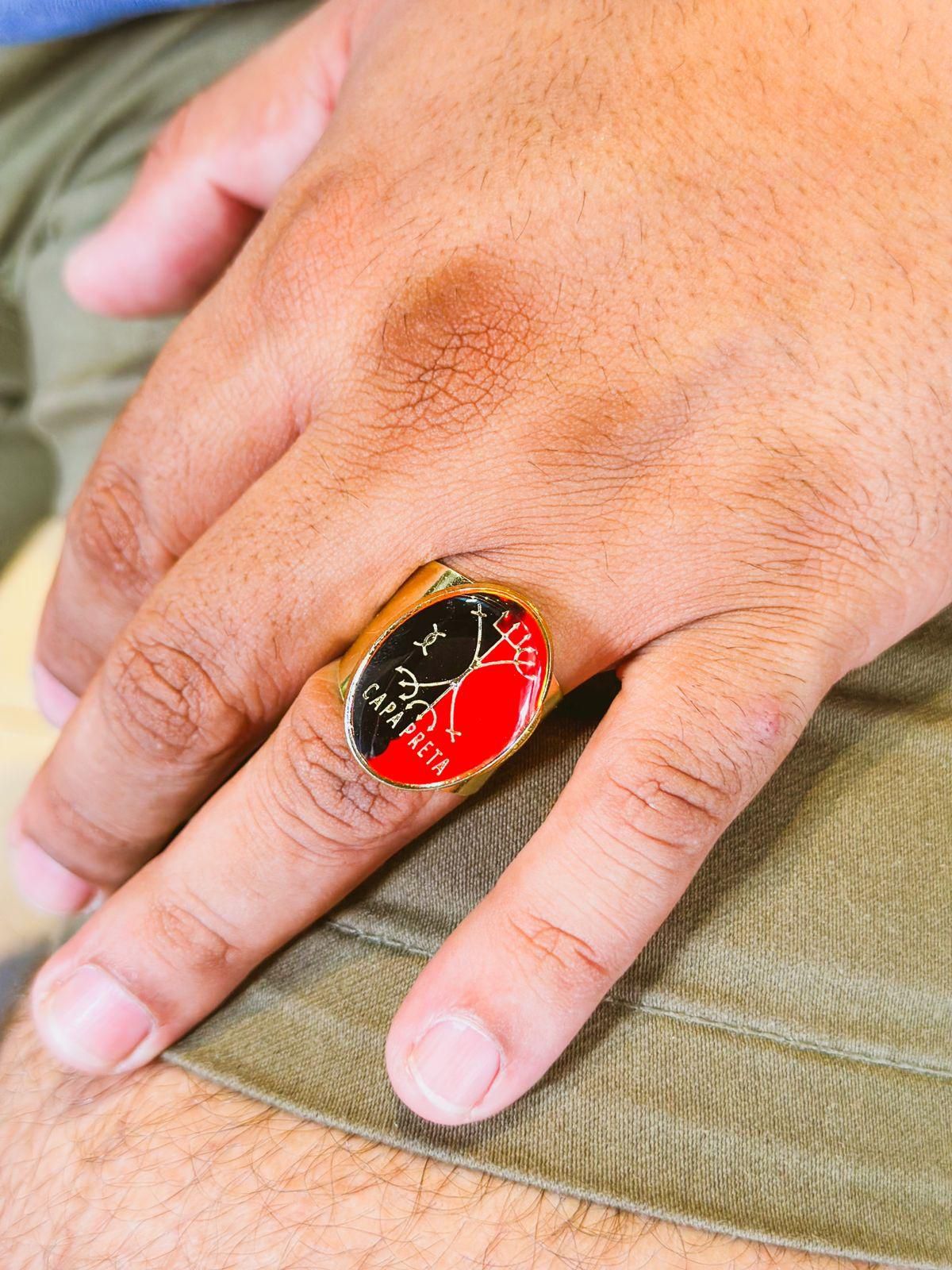 Anel feito de Zamac um material muito resistente e banhada a ouro, garantindo qualidade e durabilidade em sua peça. Além de impedir o contato dos metais com a pele, evitando possíveis alergias.
