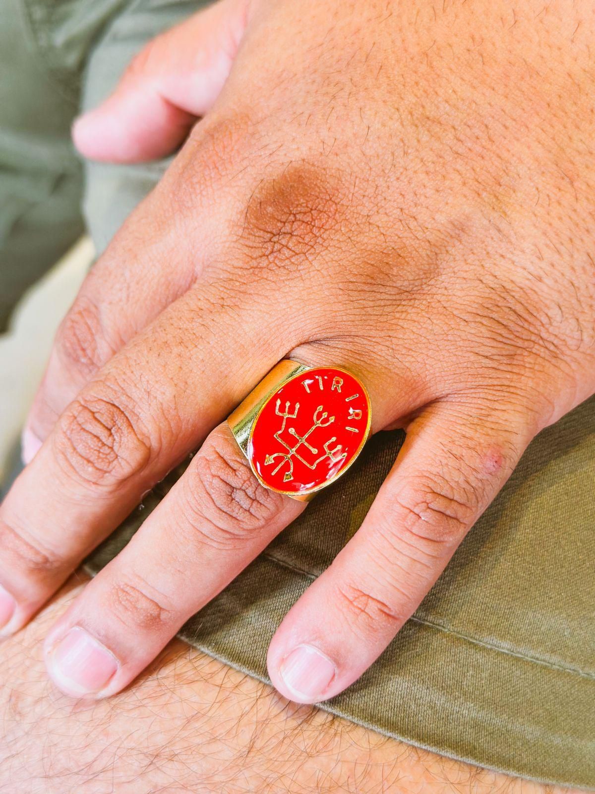 Anel feito de Zamac um material muito resistente e banhada a ouro, garantindo qualidade e durabilidade em sua peça. Além de impedir o contato dos metais com a pele, evitando possíveis alergias.