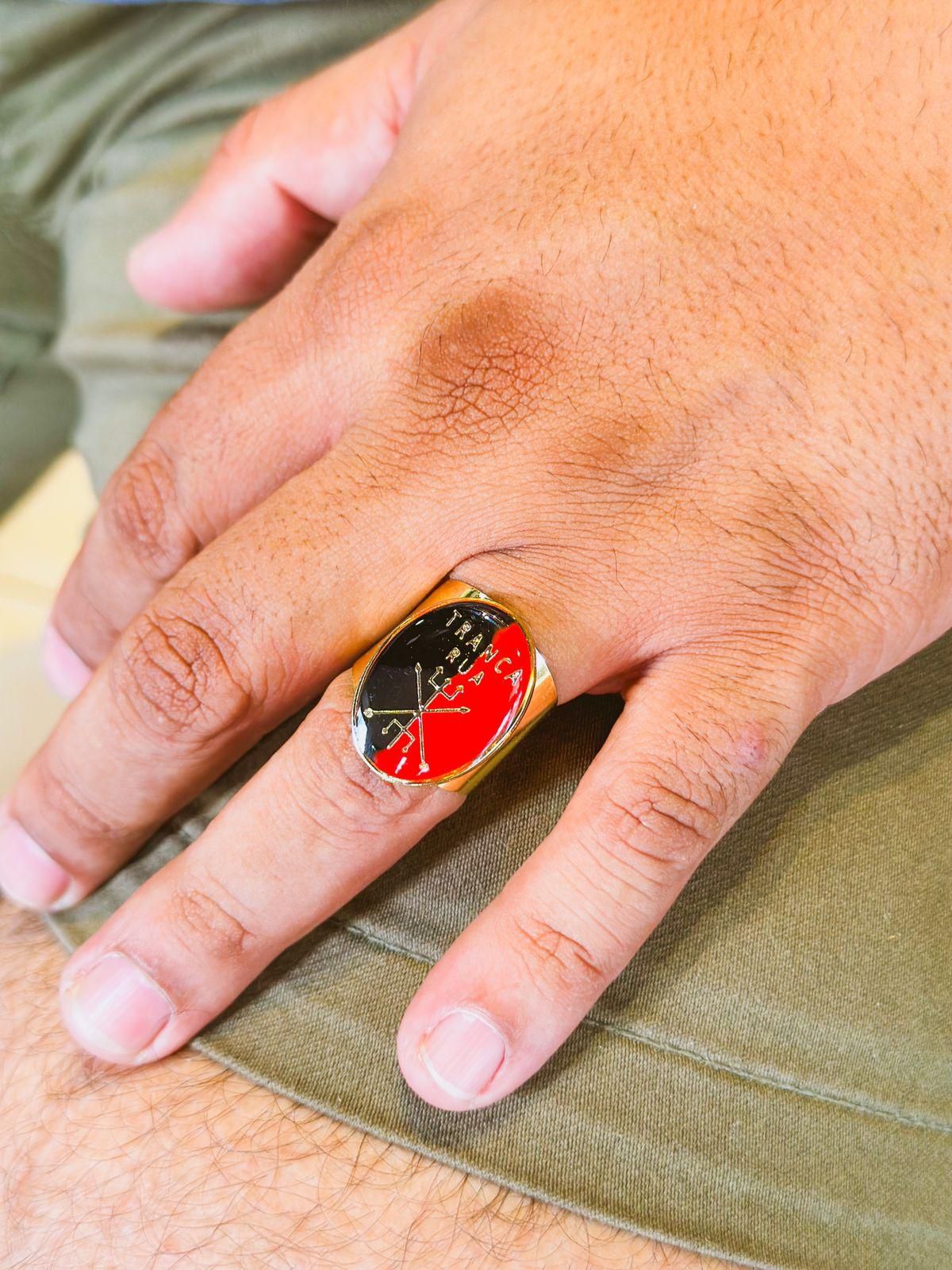 Anel feito de Zamac um material muito resistente e banhada a ouro, garantindo qualidade e durabilidade em sua peça. Além de impedir o contato dos metais com a pele, evitando possíveis alergias.