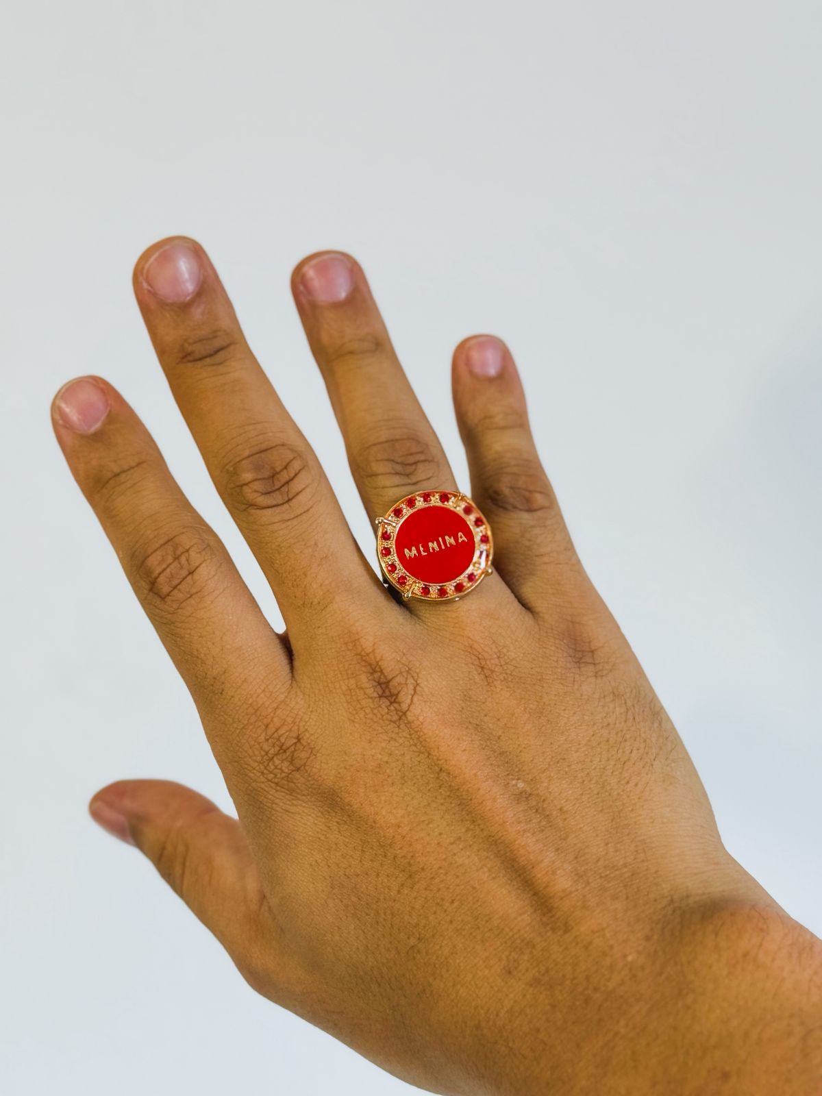 Anel feito de Zamac um material muito resistente e banhada a ouro, garantindo qualidade e durabilidade em sua peça. Além de impedir o contato dos metais com a pele, evitando possíveis alergias.