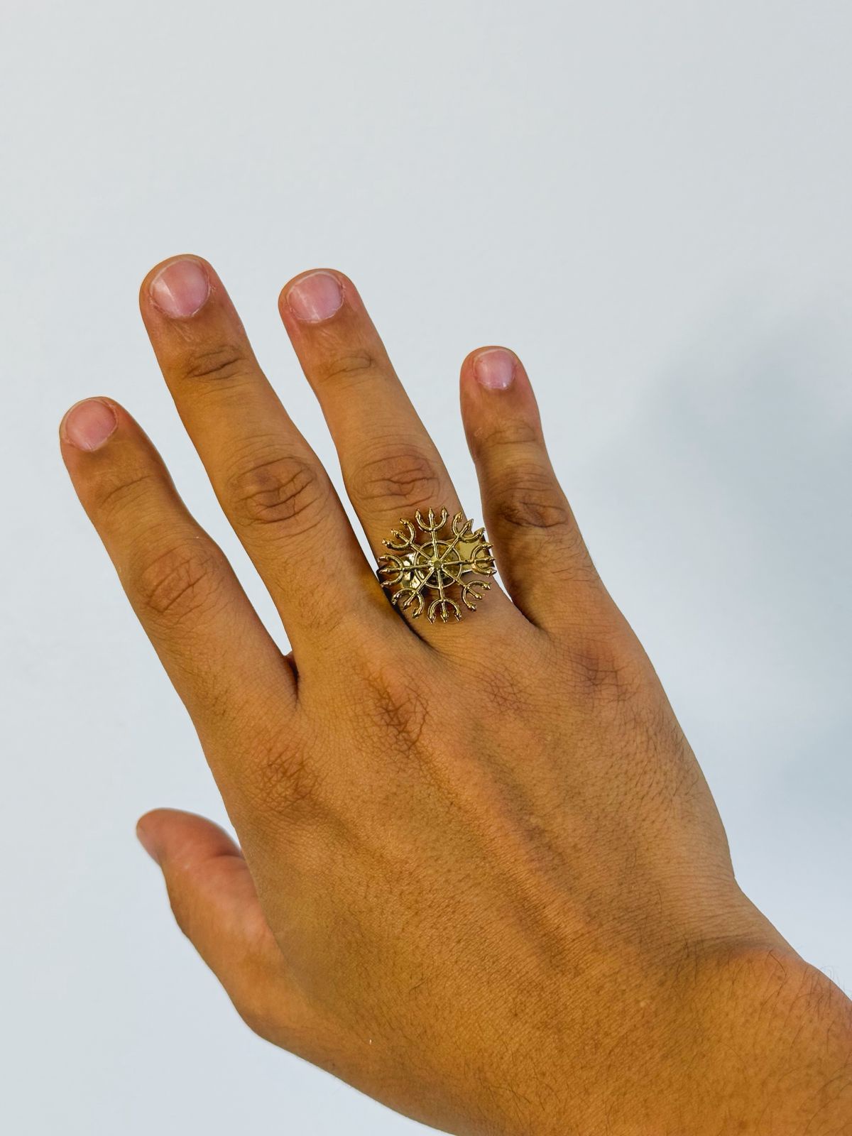Anel feito de Zamac um material muito resistente e banhada a ouro, garantindo qualidade e durabilidade em sua peça. Além de impedir o contato dos metais com a pele, evitando possíveis alergias.