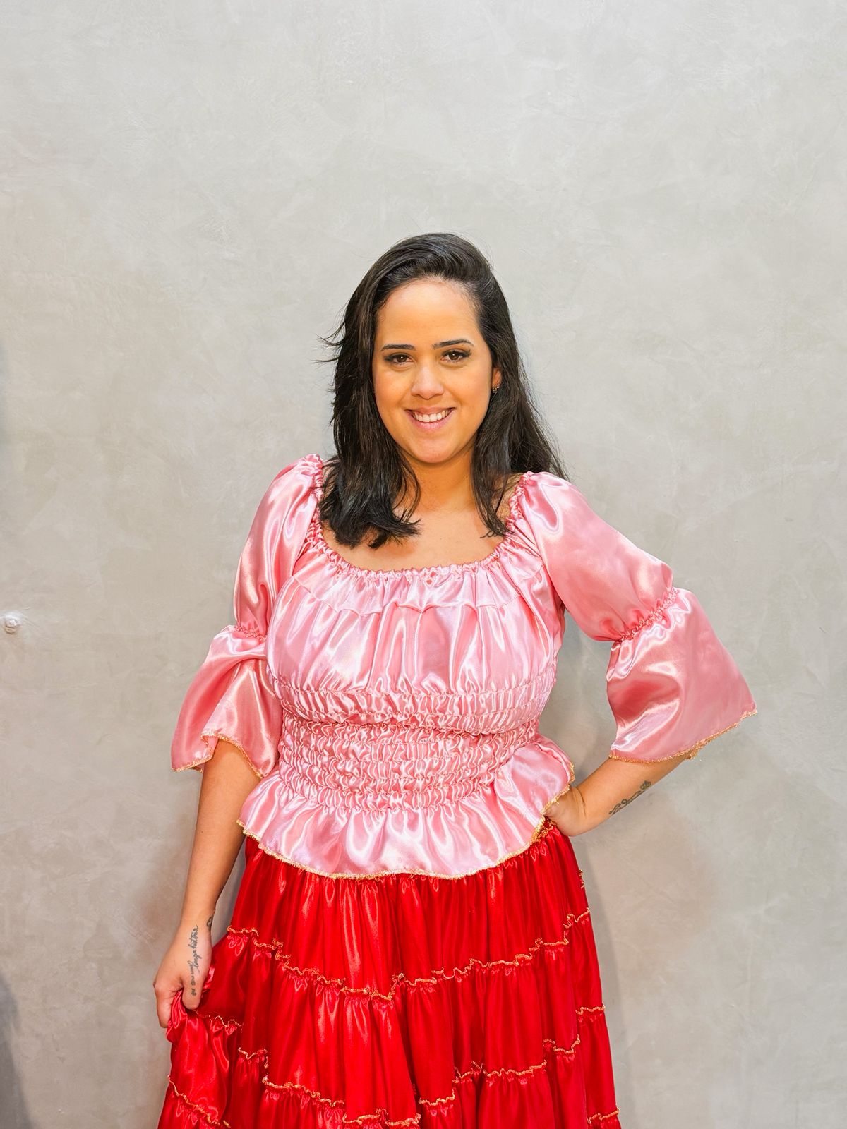 Se você procurava a bata ideal para sua cigana, acabou de encontrar! Confeccionada em cetim, além dess ciganinha ser puro encanto e força!