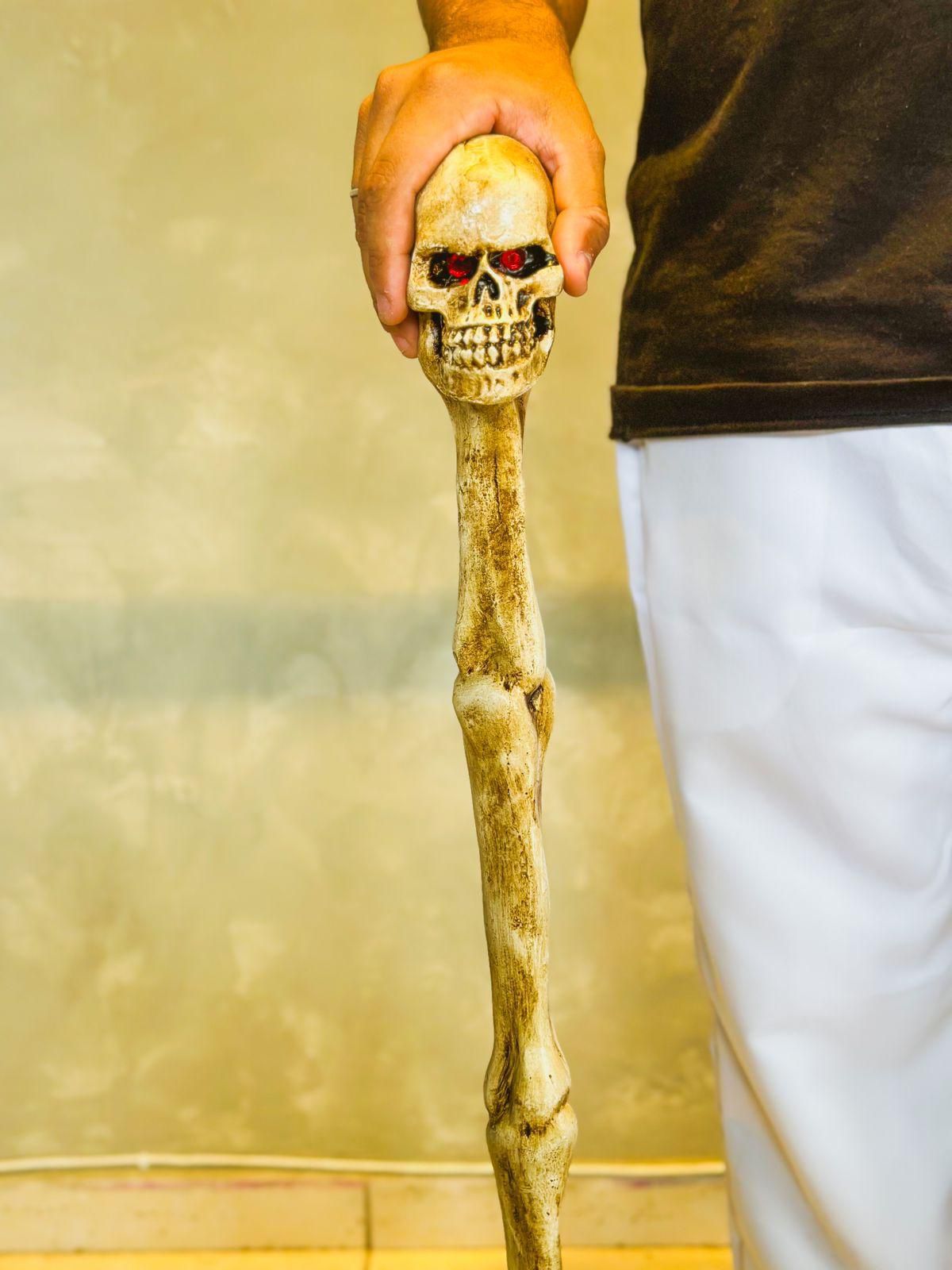 Bengala é de resina imitando osso para você presentar sua entidade.