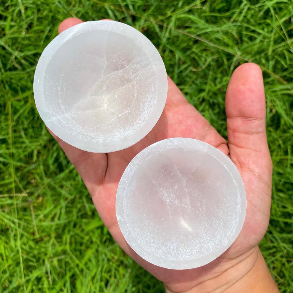 O bowl de selenita é excelente para fazer a energização e limpeza dos seus acessórios de uma forma rápida e simples