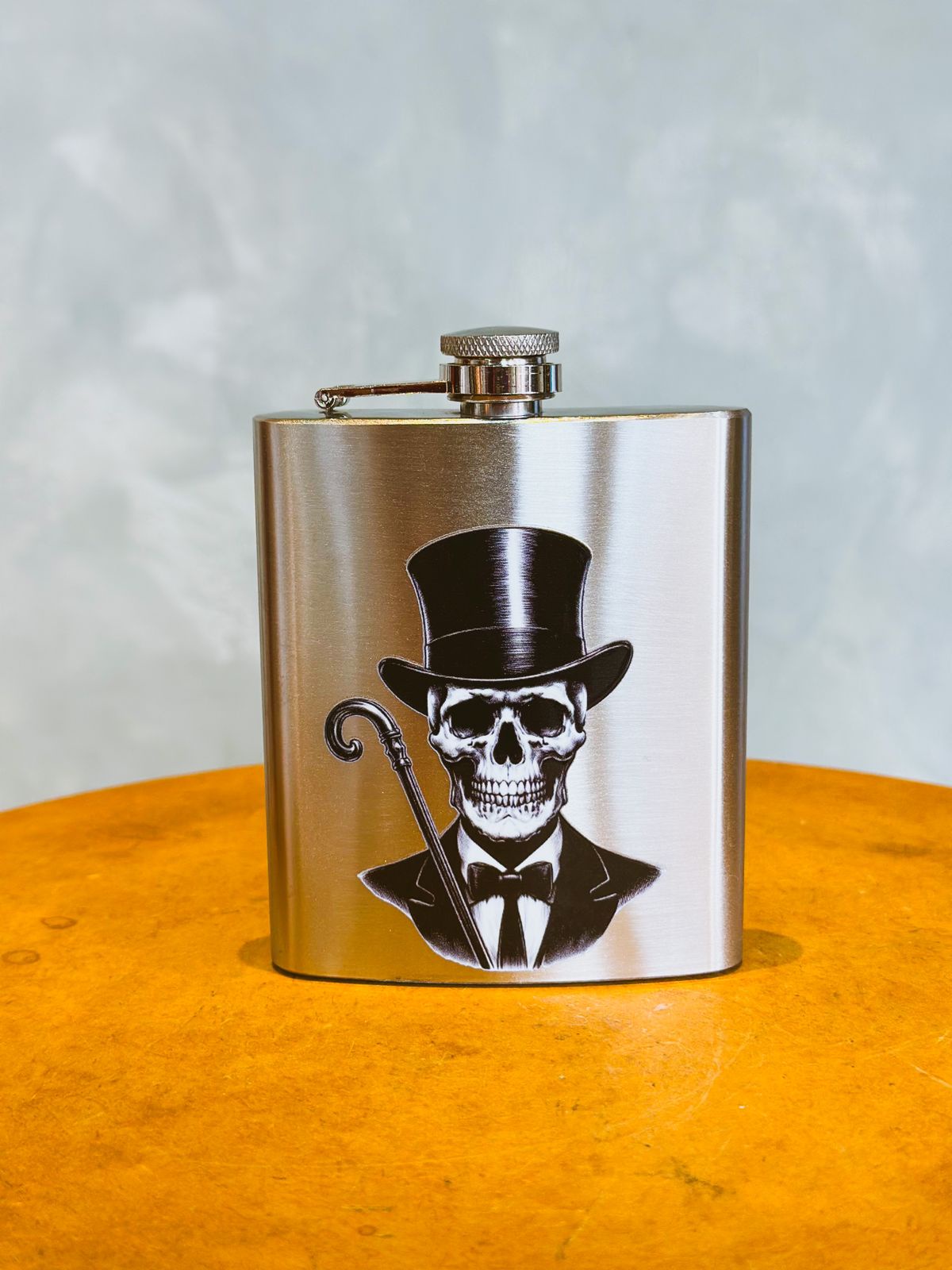 O Cantil de Bolso em Aço Inox 200ml personalizado para você colocar a bebida do seu exu.