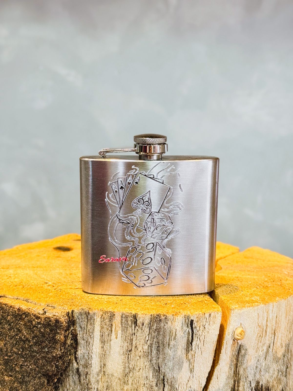 O Cantil de Bolso em Aço Inox 200ml personalizado para você colocar a bebida do seu exu.