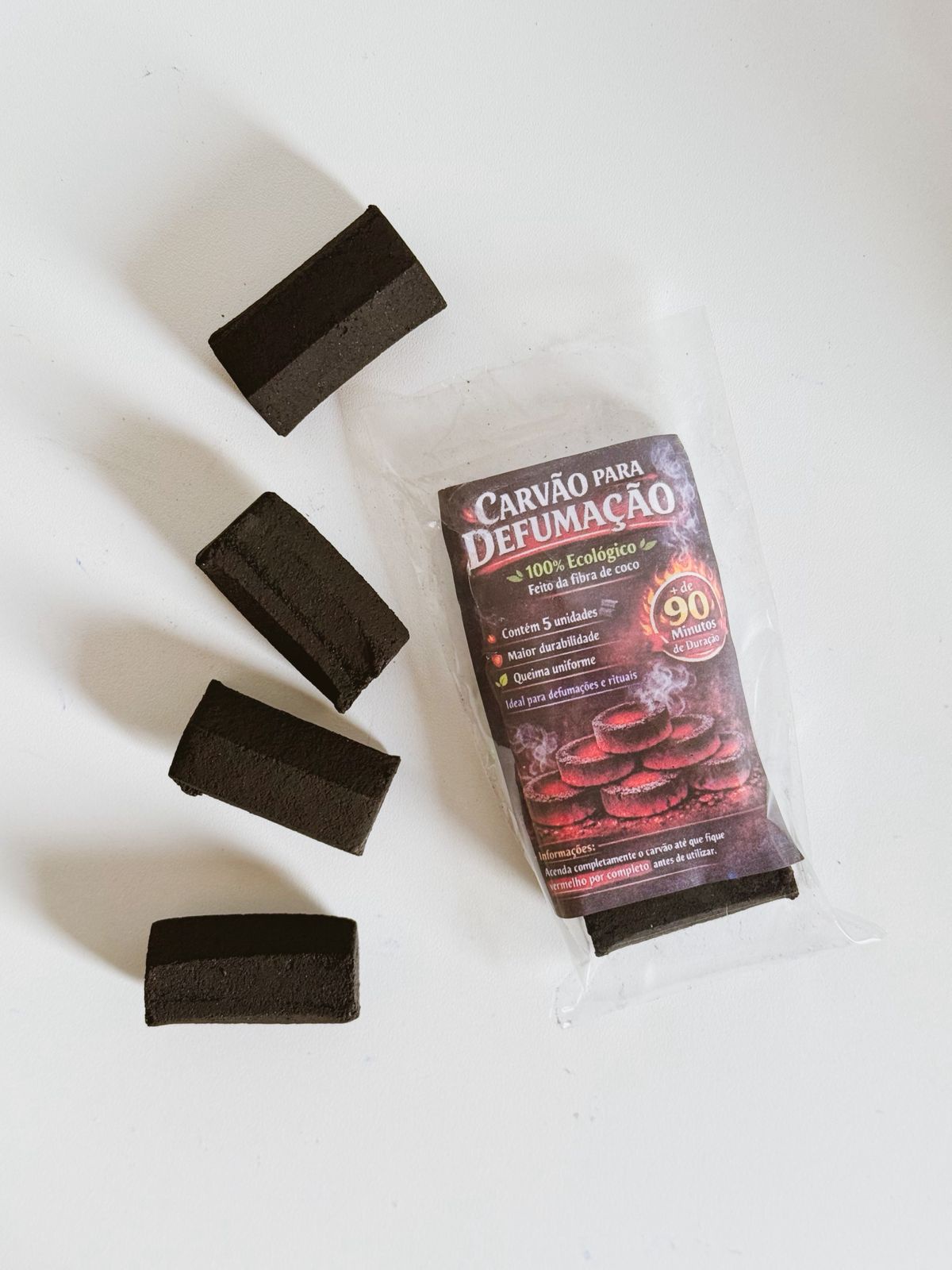 O carvão 100% ecológico 40 mm (pacote com 5 unidades) possui acendimento rápido, queima uniforme e é ideal para uso com turíbulos, defumadores, resinas, ervas e pós de defumação. Um item essencial para te auxiliar na sua defumação.