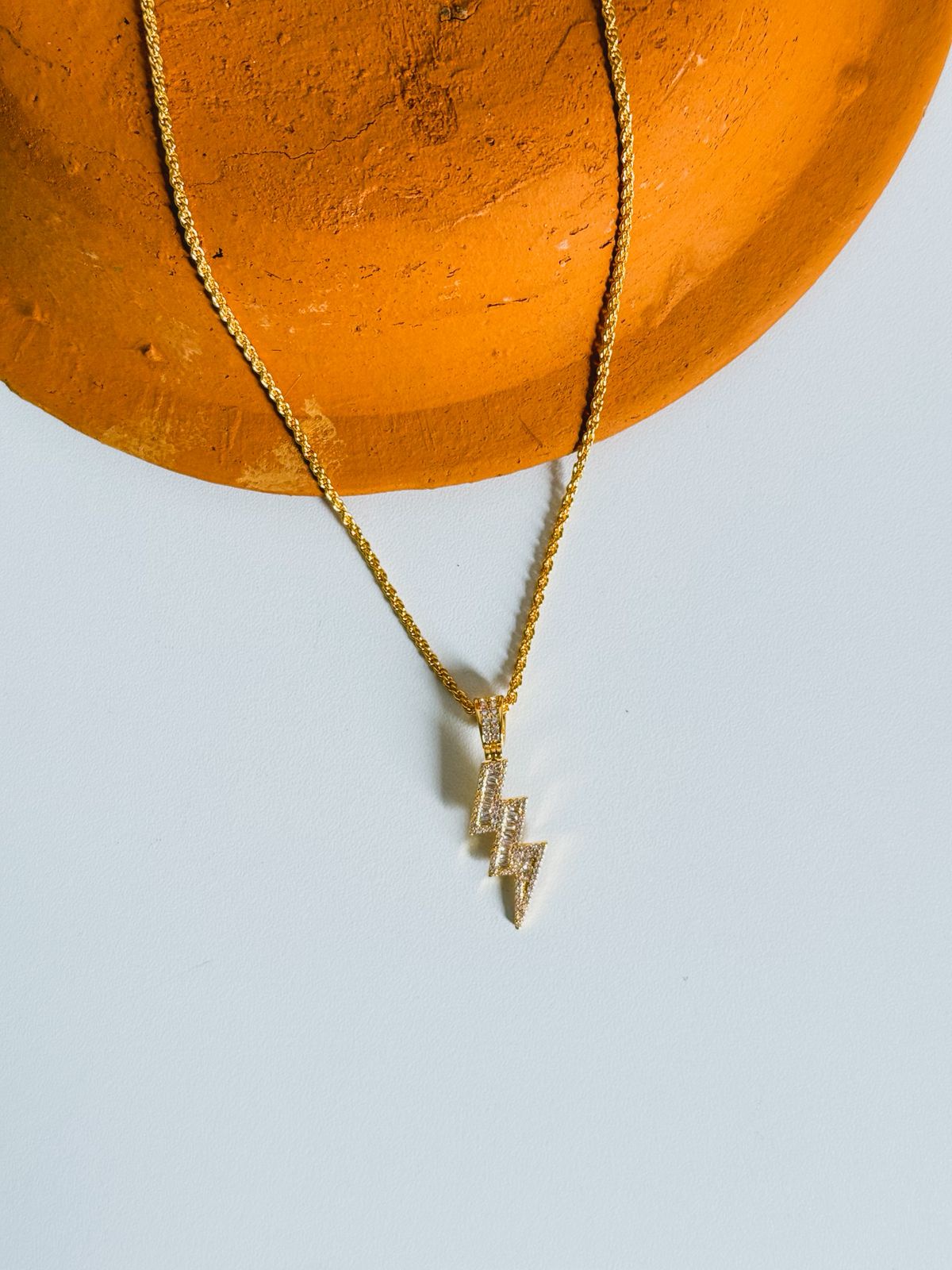 Seu pingente em formato de raio representa o domínio de Iansã sobre os elementos e sua energia transformadora, que abre caminhos e dissipa tudo o que impede o movimento da vida.