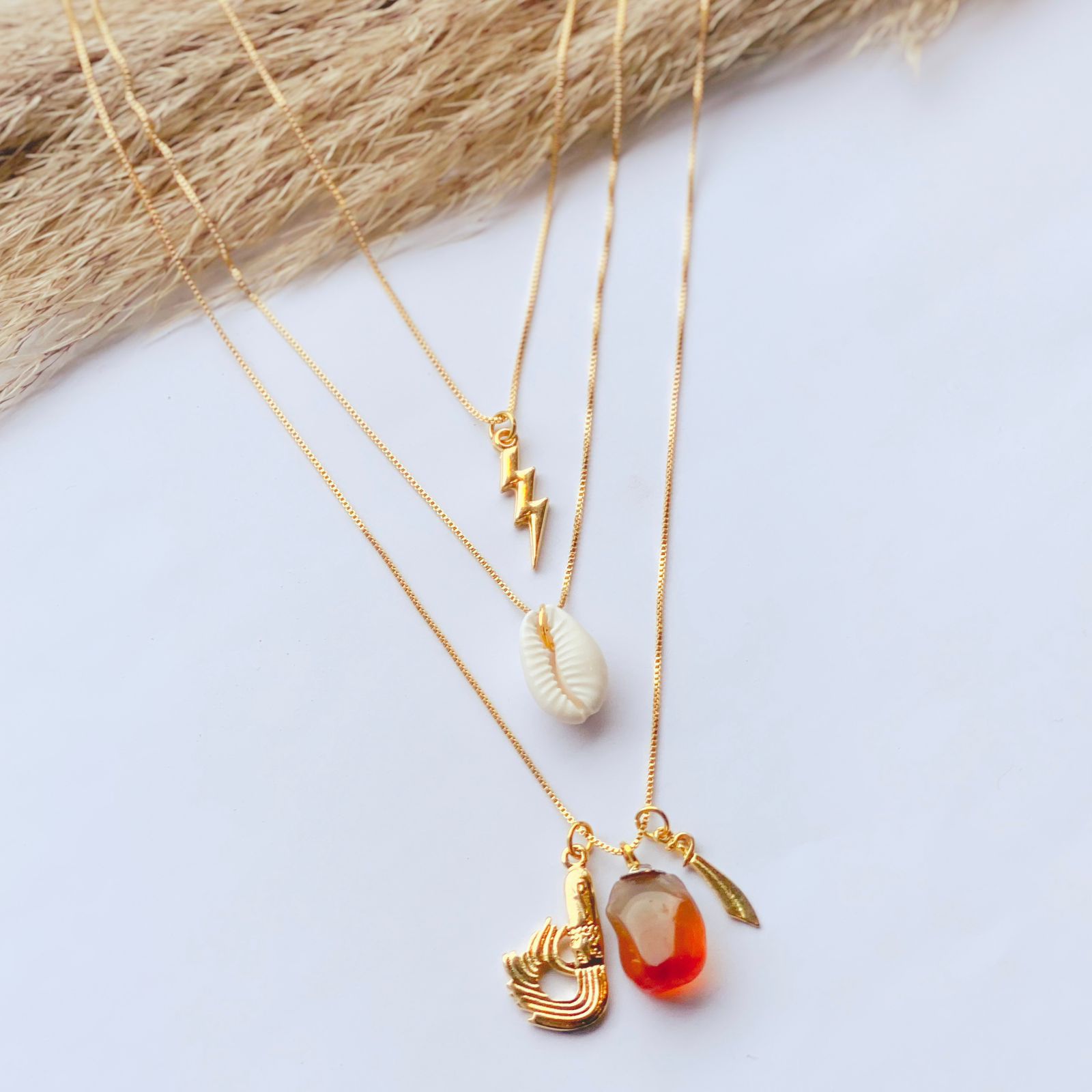 *Conjunto acompanha 3 correntes + pingentes e pedra Cornalina.