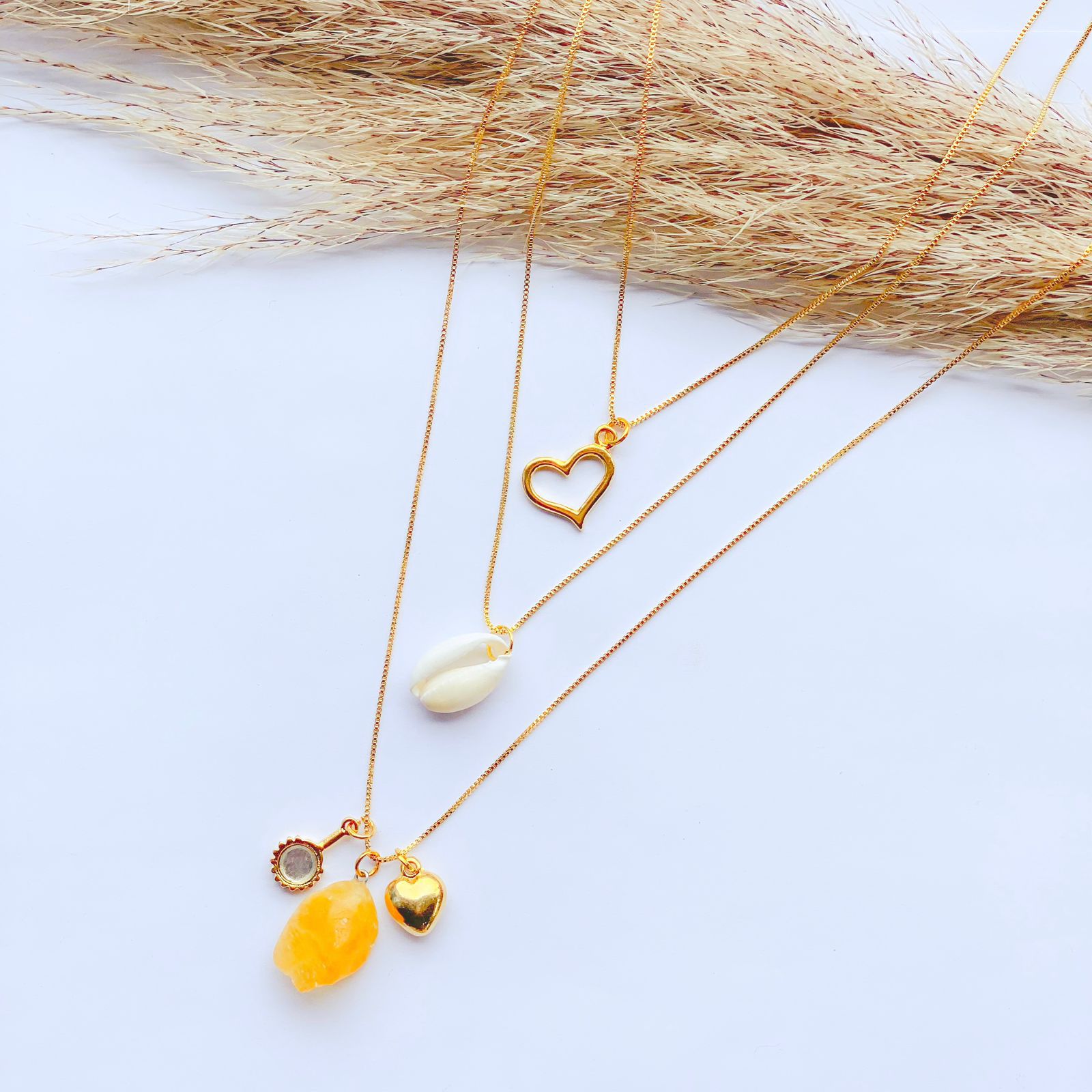 *Conjunto acompanha 3 correntes + pingentes e pedra Citrino.