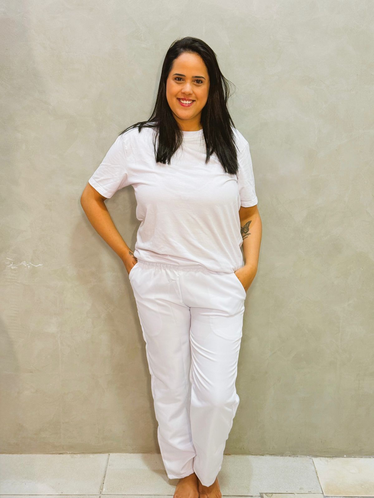Conjunto acompanha calça de Gabardine e camiseta 100% algodão. Um conjunto super confortável, leve, macio e de altissima qualidade.