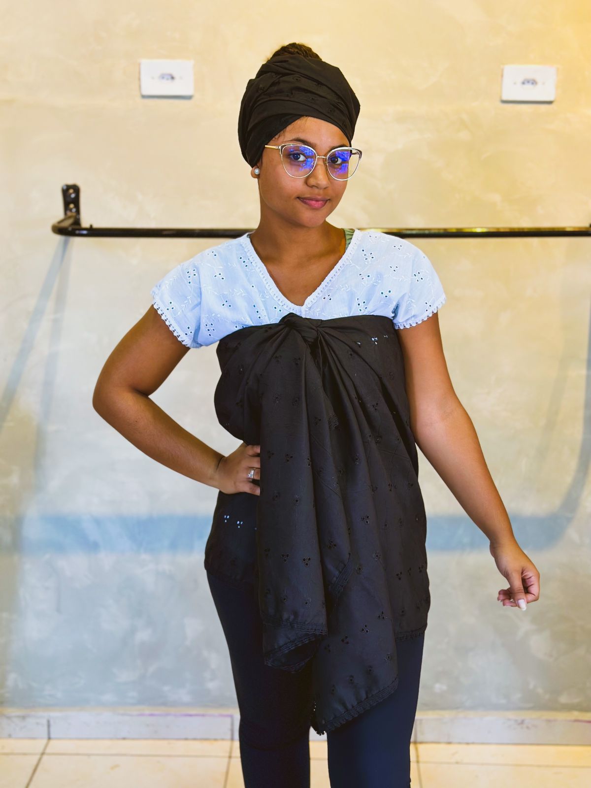 Conjunto Pano de cabeça(ojá) reto e pano da costa de Lesie preto, para umbanda e candomblé.