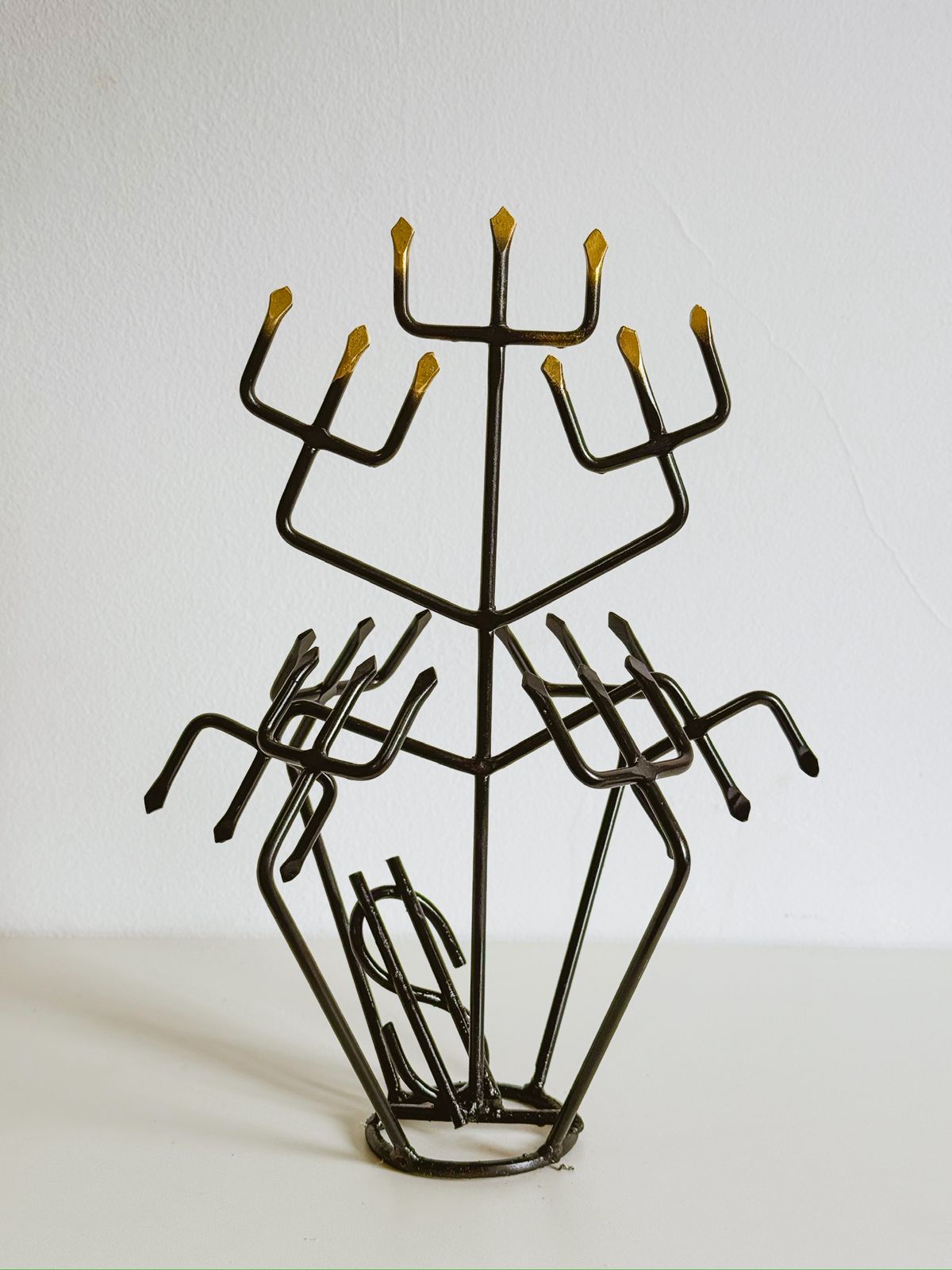 Ferradura para assentamento confeccionada em ferro, material tradicionalmente utilizado por sua força, resistência e capacidade de sustentação energética.