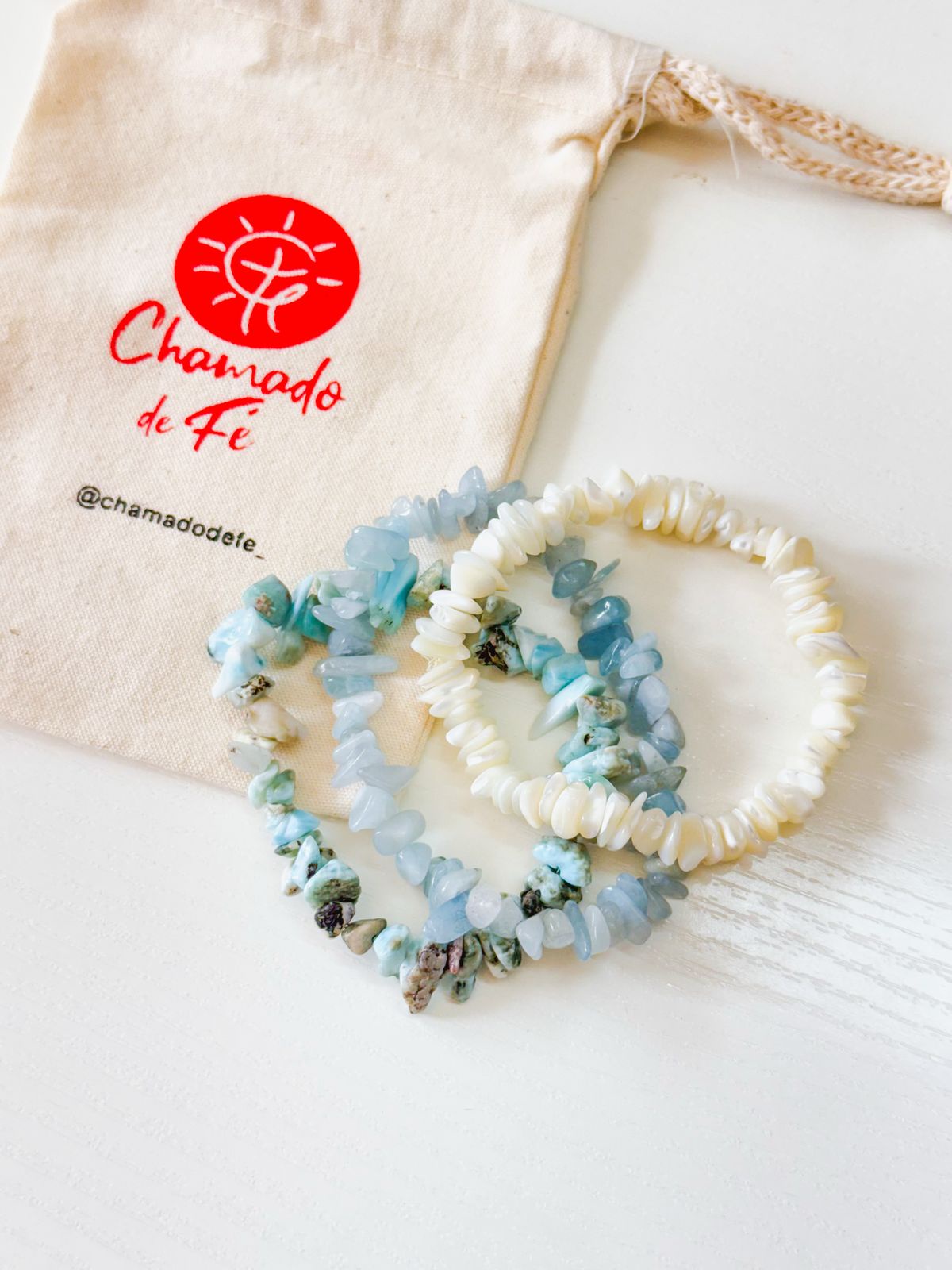 Kit 3 pulseiras que trabalham a energia de Mãe Iemanjá para te auxiliar no seu dia a dia. Kit acompanha 3 pulseiras + saquinho de algodão.