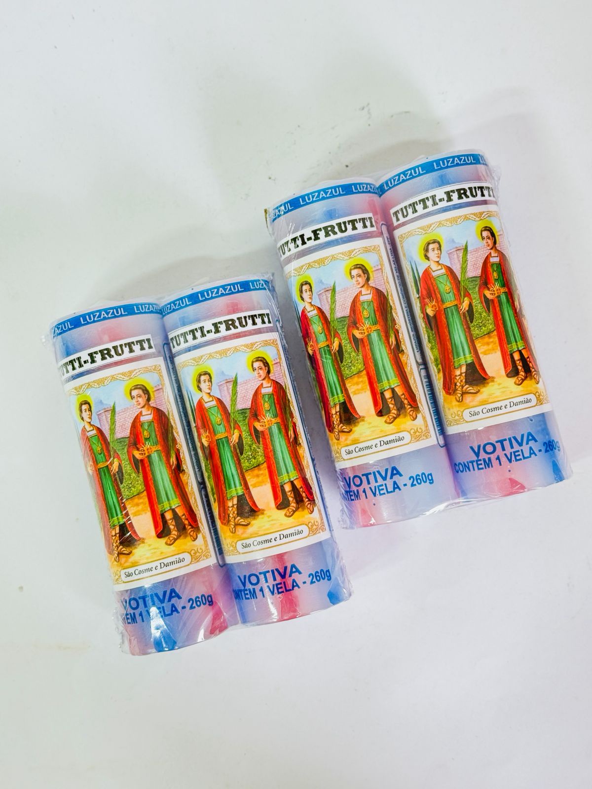 Pacote com 2 velas de 7 dias com imagem de cosme e damião