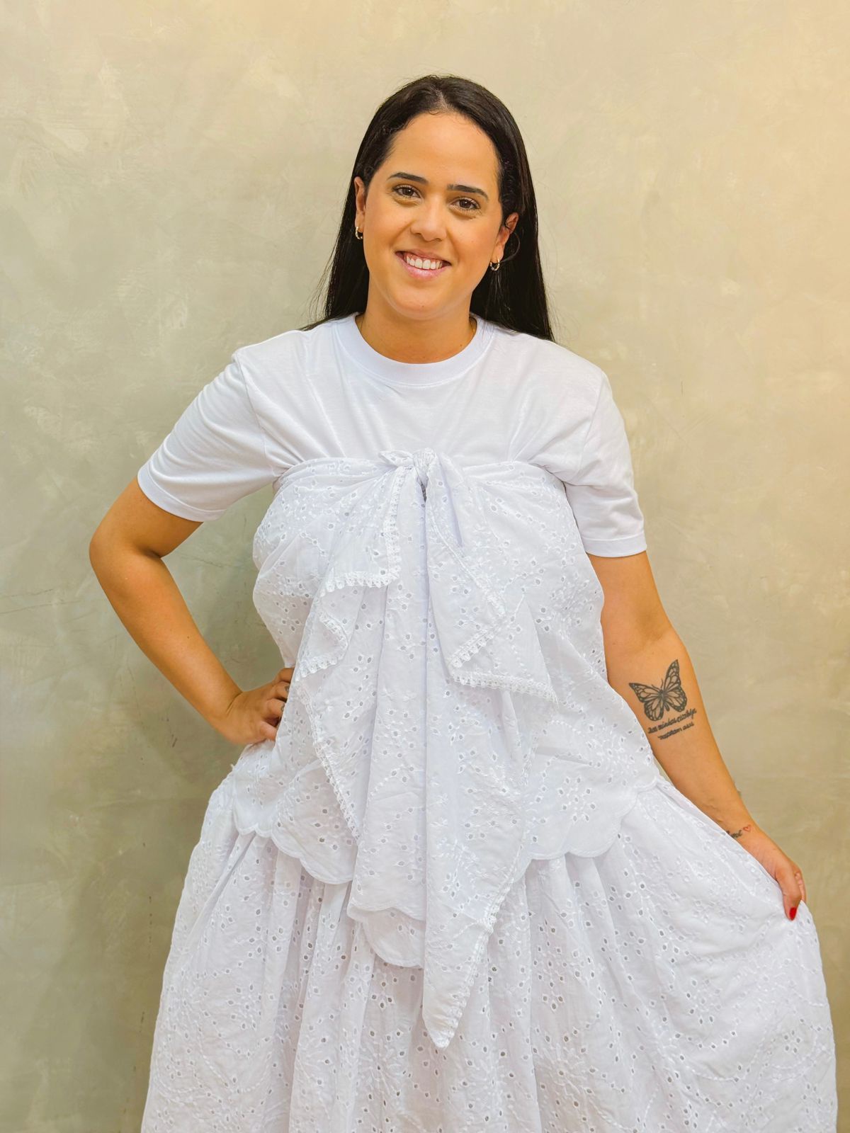 • Tecido: Lesie bordado