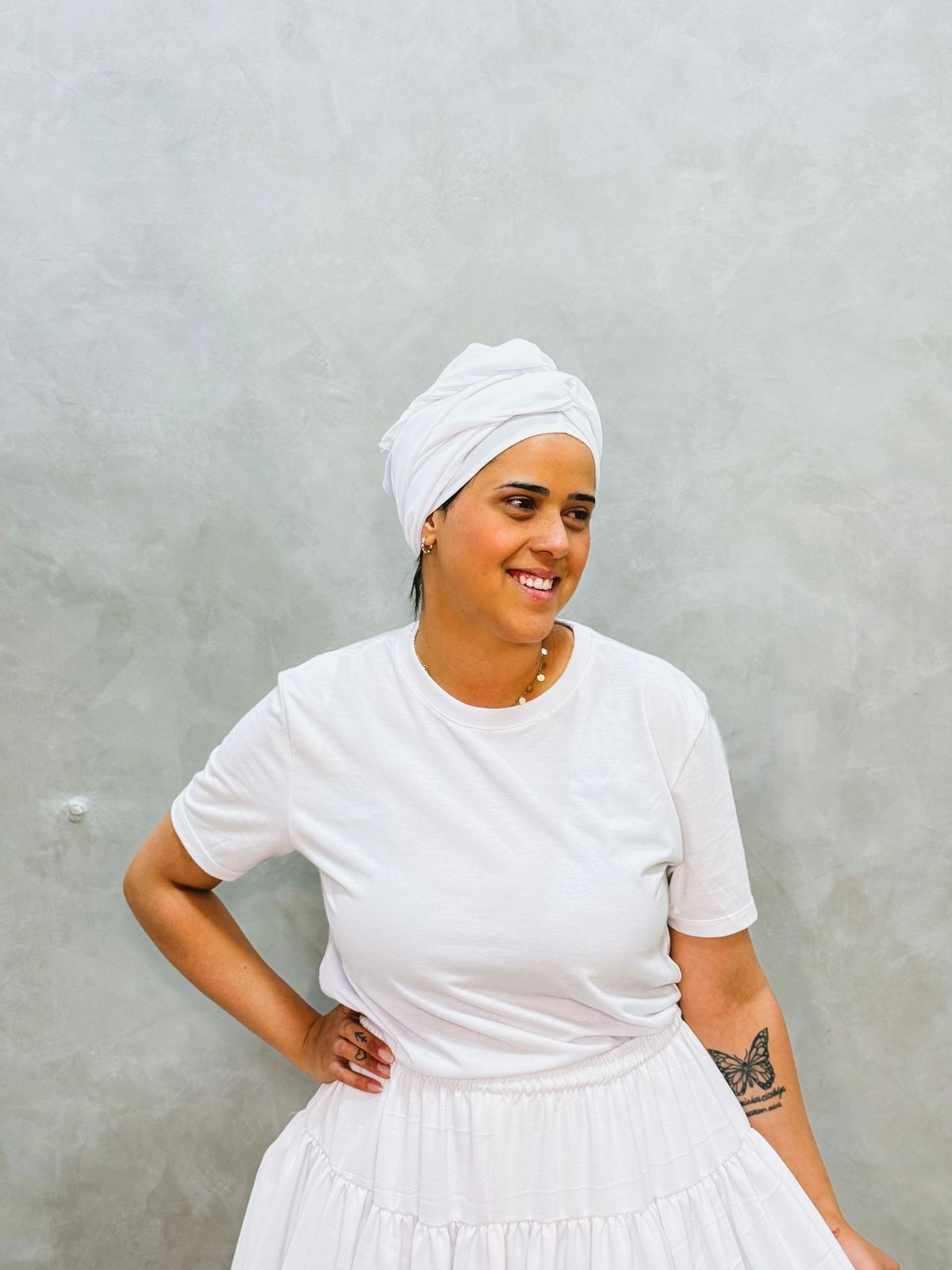 Pano de cabeça(ojá)de touca em Oxford com acabando em renda nas pontas, para umbanda e candomblé.