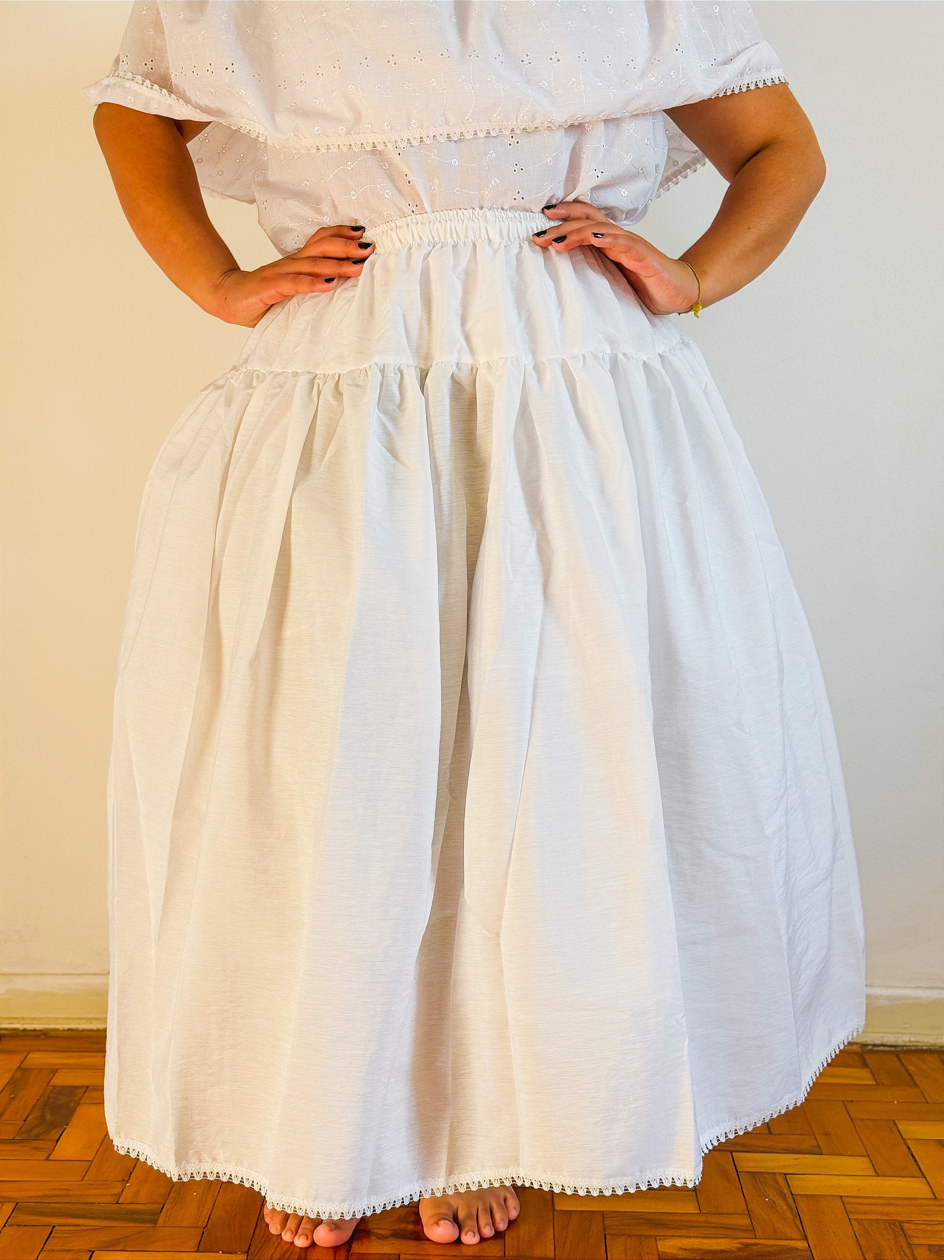 Essa saia foi feita para quem busca conforto e leveza. Confeccionada no tecido algodãozinho 100% algodão, ela tem um caimento leve e toque macio, ideal para suas obrigações e rituais.