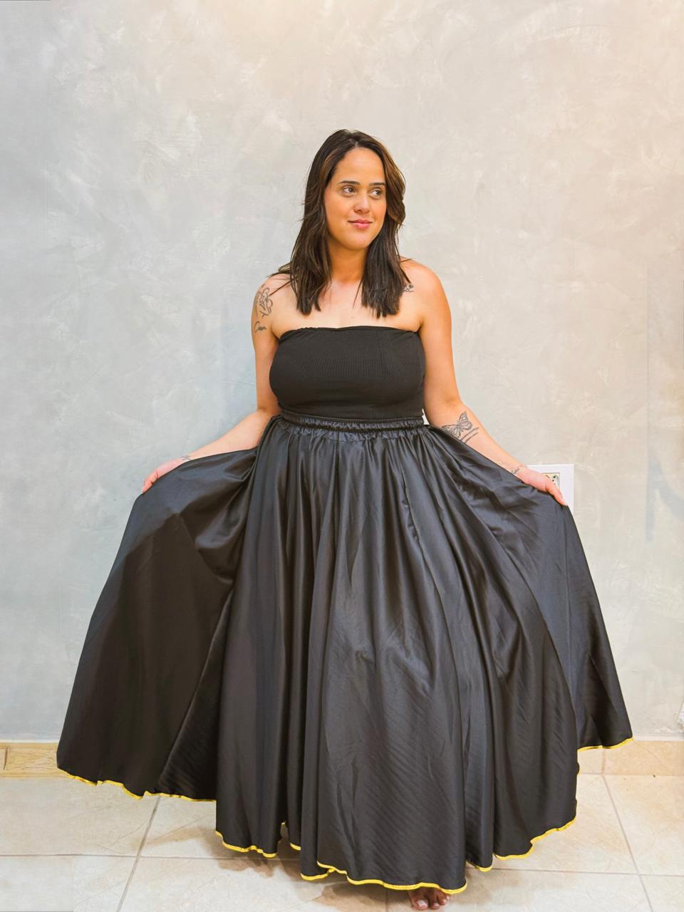 Tamanho único, mais nossas saias vestem do P ao XG perfeitemanete.